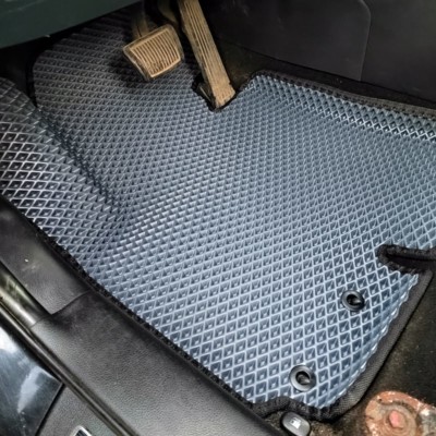Все благодаря особой поверхности, которая представлена в виде небольших углублений в форме сот или ромбов. Если при использовании обычных резиновых изделий мусор в процессе езды перекатывается по полу, пачкая салон, то ЭВА все удерживают в ячейках. Избавиться от грязи и жидкости легко — достаточно вытащить и встряхнуть коврик.